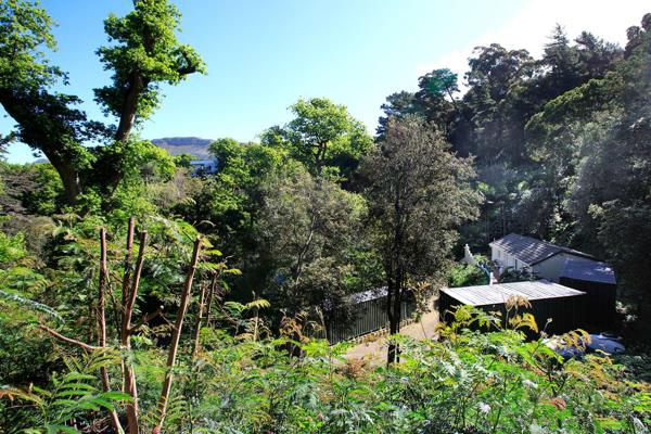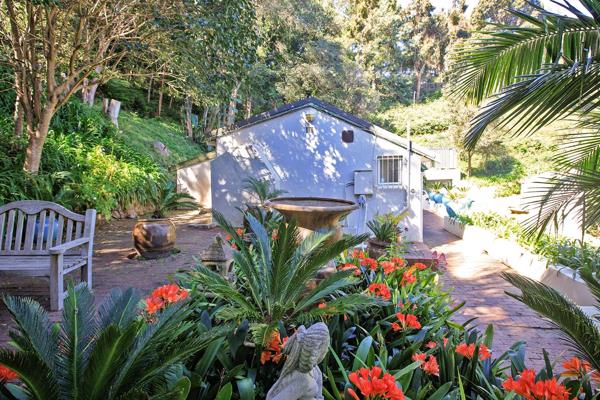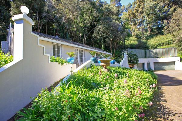 Nestled within the verdant landscapes of Constantia, Cape Town, this charming residential property offers a truly secluded and private retreat. The home presents an inviting kerb appeal, integrated seamlessly into its natural surroundings with mature trees and lush, terraced gardens that create a tranquil ambiance. A paved driveway leads to ample parking, accommodating up to three vehicles, ensuring convenience for residents and guests.