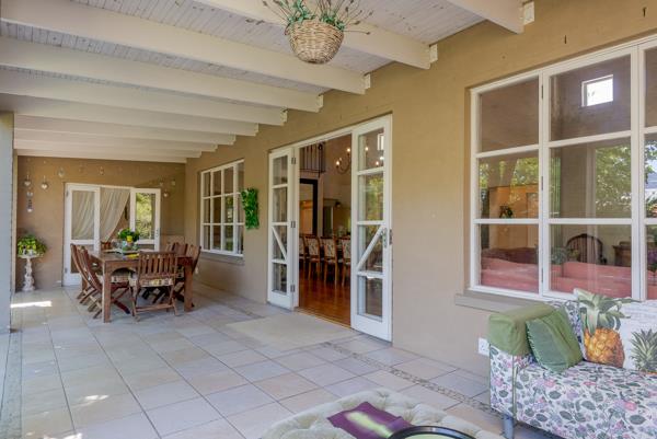 Set on a level, sun-drenched corner plot of approximately 1 371 m2, this home has been designed for modern family living with effortless flow and exceptional versatility. Expansive open-plan living and dining areas feature double-volume ceilings and French doors that spill out to a covered entertainment patio. Here, everyday life transitions naturally into outdoor leisure, whether youre hosting sunset dinners, watching children play on the lawn, or enjoying a quiet morning beside the sparkling solar-heated pool.