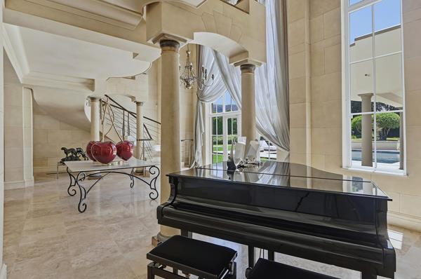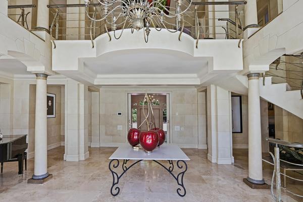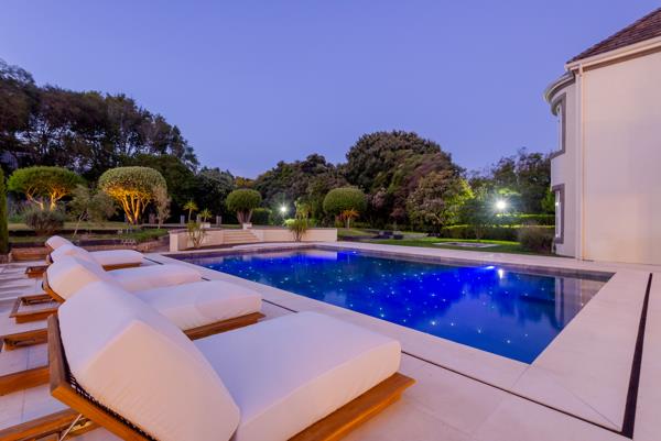 Outdoor living elevates experience to memory, including a built-in pizza oven, built-in braai and illuminated main pool that glows beautifully after sunset. A dedicated doggy pool adds playfulness for pets without distracting from the homes refined landscape. With its exquisite landscaped gardens, perfectly manicured flower beds, and lush level lawn, the estate unfolds as a beautifully picturesque sanctuary.