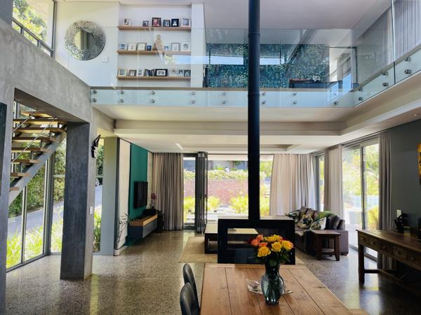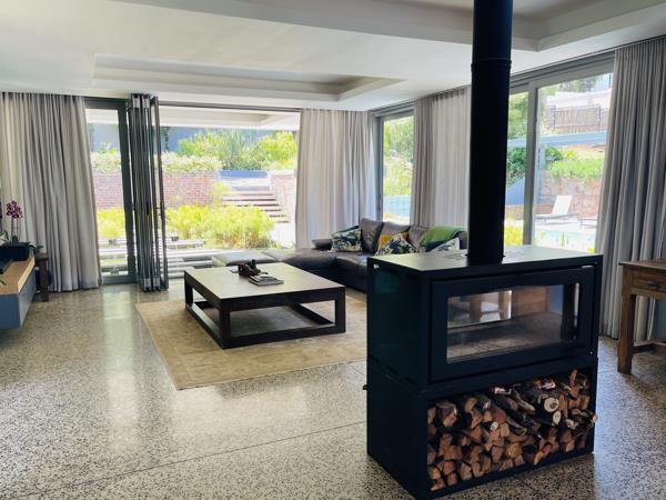 Open plan living at it''s best, with the central area exposed to double volume ceilings, incorporating beautiful light. Large aluminium sliding doors and windows throughout, showcasing the garden and creating an easy flow to the outdoor diningbraai area and poolsundeck. The large, central fireplace is perfectly positioned to create warmth throughout the entire home in winter. The fitted kitchen has a separate scullerylaundry, opening to a balcony.