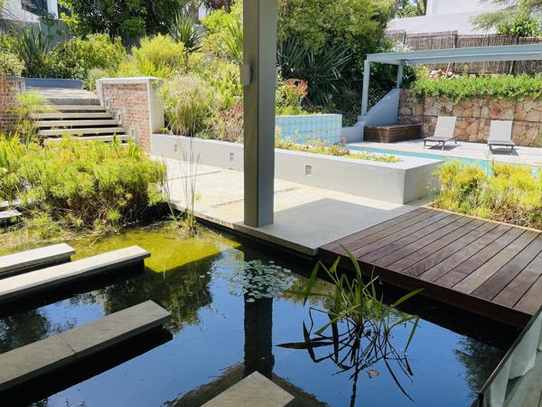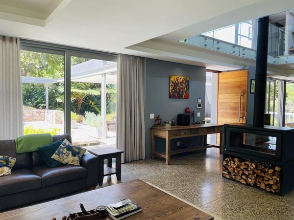 Minimalist blended with style and nature, combining all of the elements and textures needed for the calmness of comfort - a soulful, modern home. Designed by Matt Pretorius, completed six years ago, the home is still new whilst the captivating garden is established and lush. Set within the prestigious Hohenort area, within walking distance from the historic hotel and 100m from the entrance to the Klaasenbosch trail, which takes you up to Cecelia ForestTable Mountain and all the way down to the Alphen.