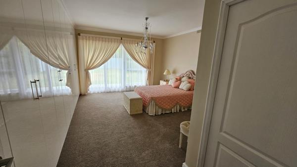 The well-appointed kitchen is complemented by a separate laundry and scullery for added convenience. The home is further enhanced by a solar and inverter system, as well as a borehole with an irrigation system, ensuring efficiency and sustainability.