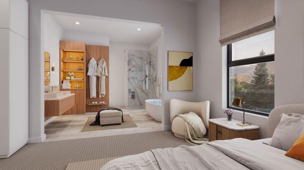 A gracious country lifestyle awaits the discerning buyer in this exclusive and secure gated estate. Thoughtfully designed, the homes feature open-plan living areas, spacious bedrooms, a state-of-the-art kitchen, and inviting entertainment spaces. With clean lines and impressive proportions, each light-filled home is curated to create a seamless flow between the interior and outdoor spaces. Ground floor terraces and upstairs balconies enhance the connection to the surrounding natural beauty. Bespoke finishes, such as Oggie-engineered oak flooring and LED lighting, add a touch of elegance, while generous windows and glass doors ensure an abundance of natural light throughout.
