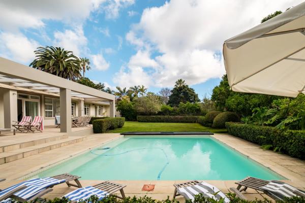 The exterior compliments the homes charm, with auto entry gates, intercom, a large brick forecourt for ample parking, a double garage with automated doors and direct access, and a third tandem garage with side garden entry. Special features include a slate roof, screed flooring, 16 solar panels with inverter, underfloor heating in selected rooms, white American shutters throughout the north-facing living areas, and a pool with cover. The well point with auto irrigation keeps the lush, level garden pristine, framed by formal hedges and mature trees. Additional features include a staff cloakroom, alarm system linked to ADT, and a desirable south entry with north-facing, wind-free orientation the perfect Constantia family haven.