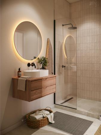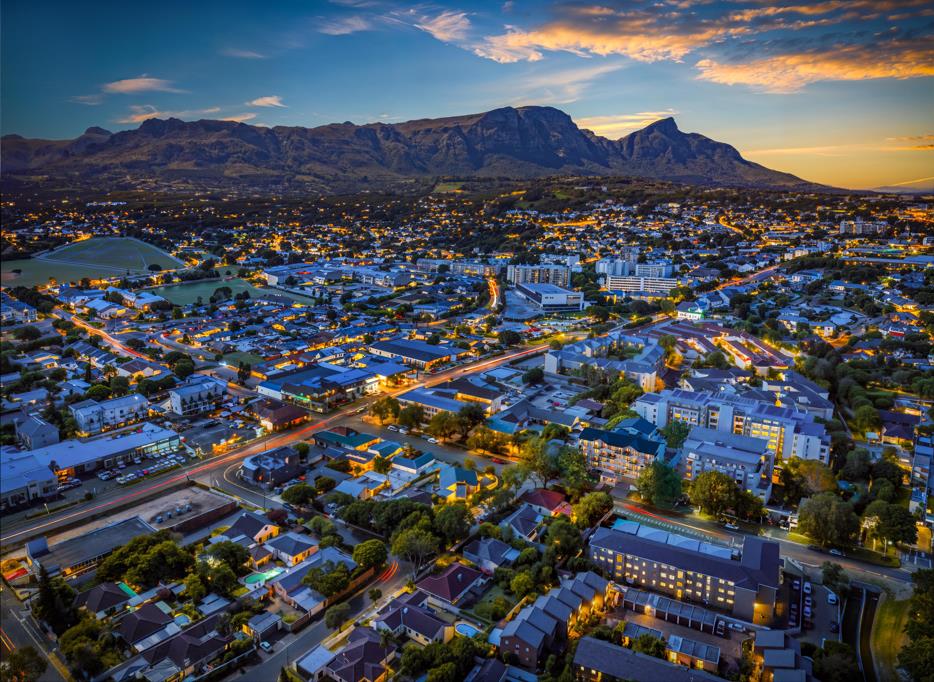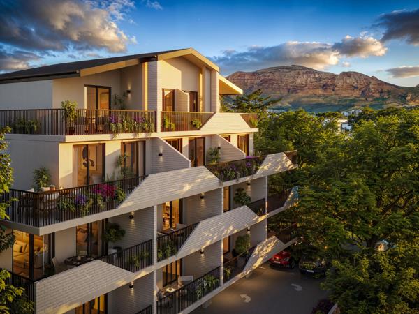 Each apartment features open-plan living areas that flow onto private balconies, creating light-filled spaces designed for everyday comfort. Well-appointed kitchens include an integrated oven and hob, with practical layouts, built-in storage, and modern finishes throughout. Select units enjoy stunning views toward the Southern Suburbs mountains, adding an elevated outlook to daily living.