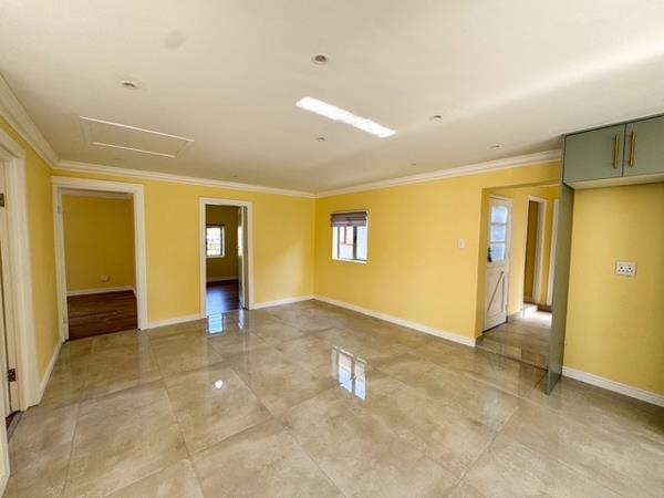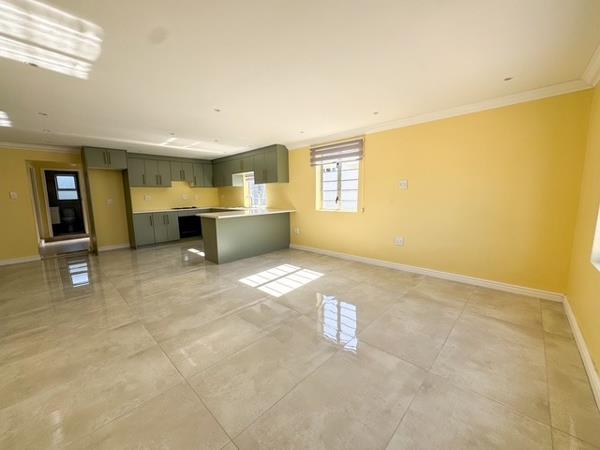 Discover this inviting residential property in Heathfield, Cape Town, offering a fresh and well-maintained exterior. The home presents a recently painted grey facade with white trim, complemented by new-looking gutters and a neatly paved front area, enhancing its curb appeal. A low grey perimeter wall and simple gate provide a sense of security and privacy, while a large tree adds a natural touch to the front yard. Step inside to an open-plan living space designed for modern comfort, featuring two spacious lounges and durable tiled flooring throughout.