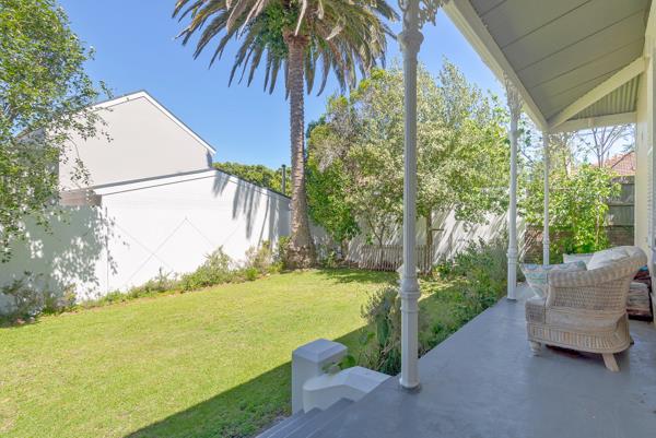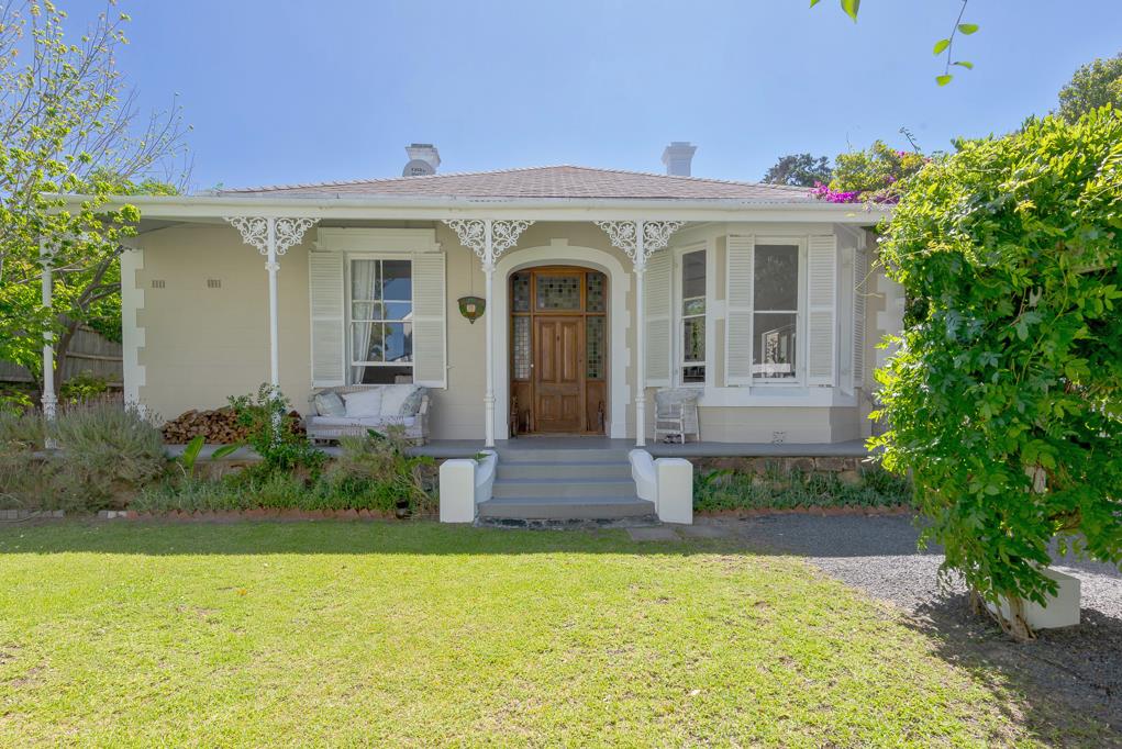 The charming front porch overlooks the garden, inviting quiet mornings with a coffee or unwinding with a glass of wine and a book after a long day.