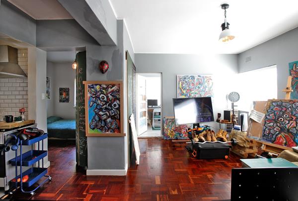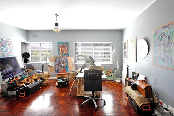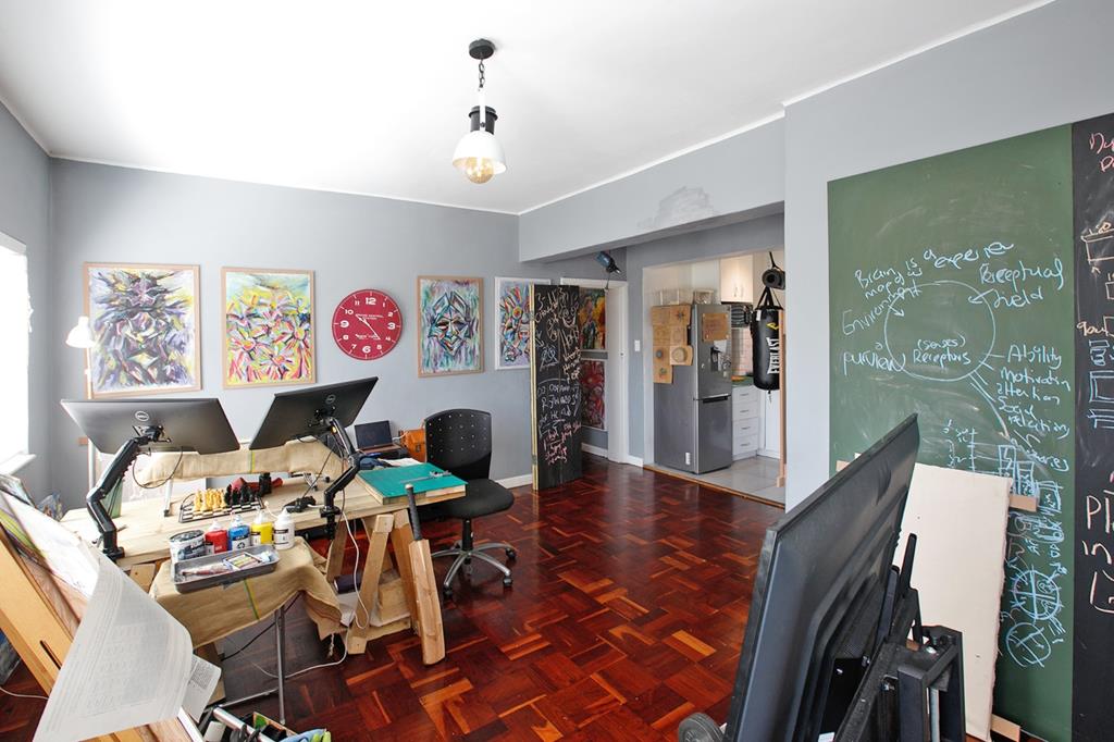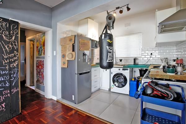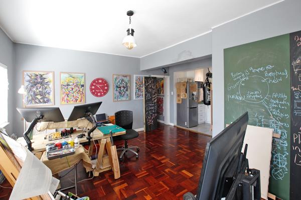 Spacious bedroom with built-in cupboards, and one bathroom with shower.