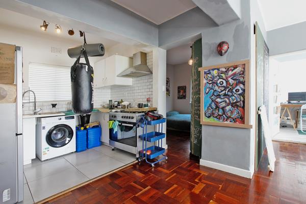 Contemporary kitchen and plumbing for washing machine and dishwasher.