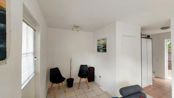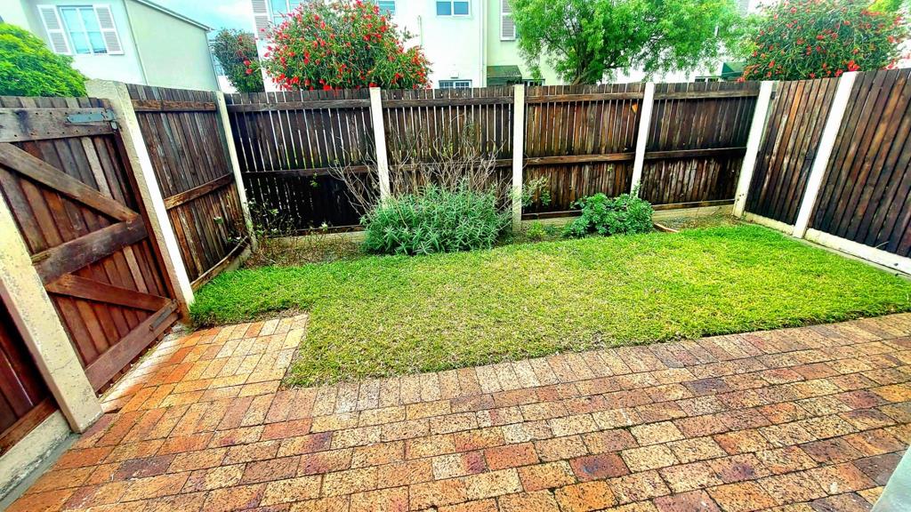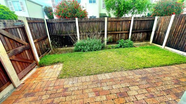 Both dining area and lounge flow seamlessly through to the open plan kitchen. The kitchen is spacious, with plenty of neat cupboard space, plumbed well, and has a freestanding stove so you can master your culinary skills while your kids do their homework at the kitchen counter. The kitchen door leads out onto your back garden, which is neatly brick paved and low maintenance- A clear outside space to watch over your little ones while you are cooking or lounging in the living room.