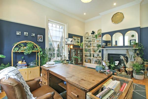 Formal study with wooden flooring and original fireplace. Downstairs guest cloakroom.