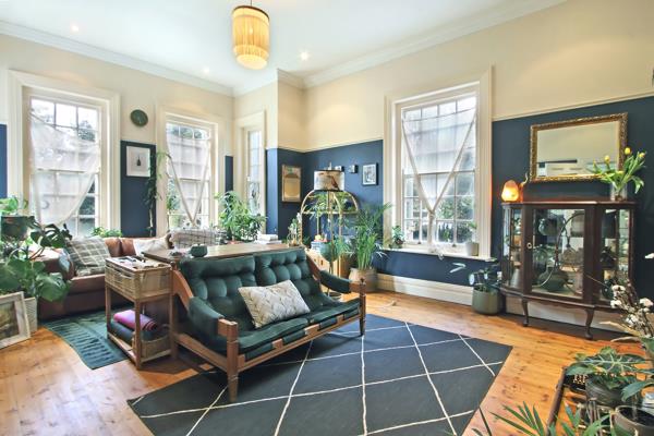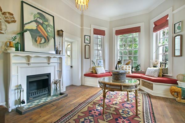 Separate formal living room with original wooden flooring, feature fireplace, high ceilings with sash windows overlooking private, well established garden.