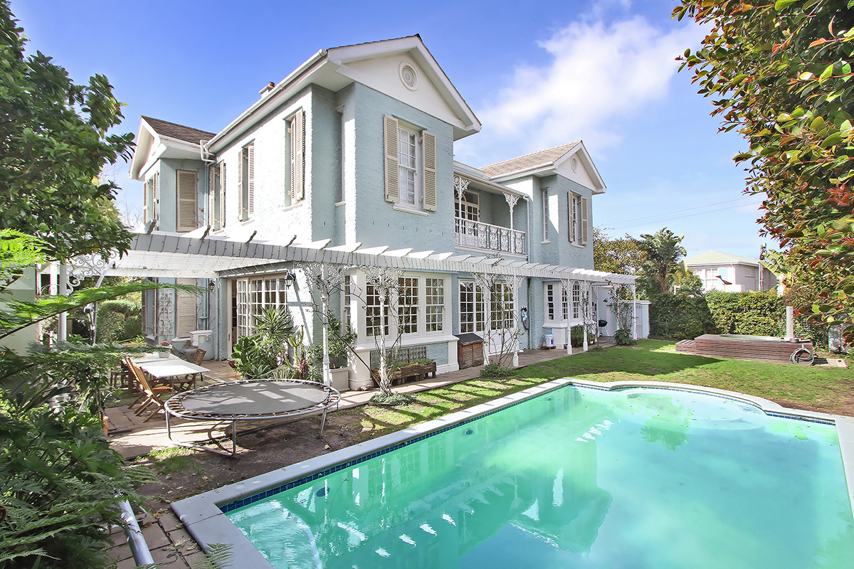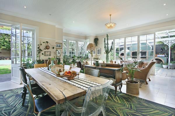 North facing outside entertainment with built in braai and pizza oven, leading to swimming pool and private garden.
