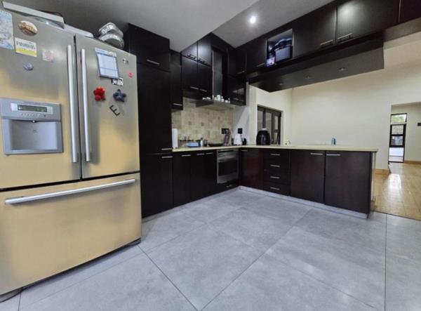 The outdoor/courtyard area is intended for leisure, with a separate braai area where children may play and express their creativity. This space might potentially be transformed into a lovely garden or large enough to house a pool. For further security, the property boasts electric fence and an automatic enclosed garage that can hold three vehicles.