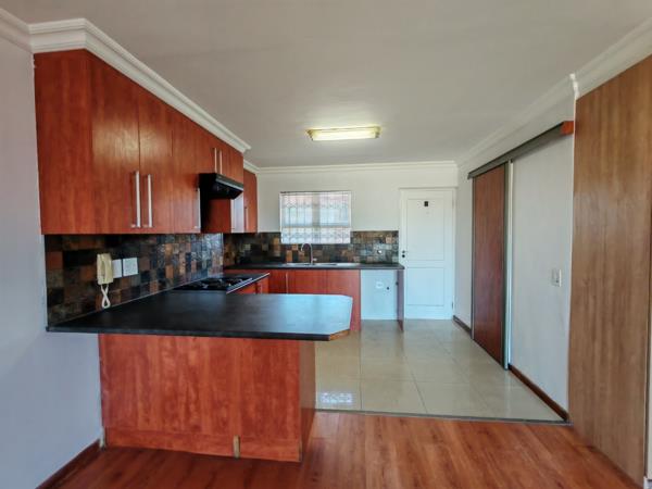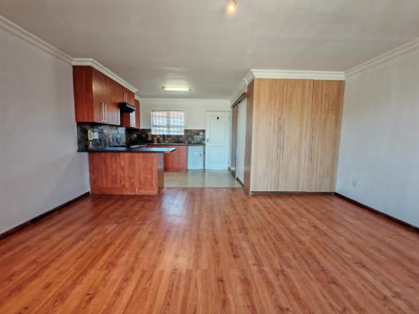 This apartment offers a stylish open-plan layout, seamlessly connecting the bedroom, kitchen, and lounge area, creating a spacious and modern feel. The kitchen is fully fitted with quality finishes and features a breakfast nook, ideal for casual dining or entertaining. The porcelain-tiled kitchen adds elegance, while the laminated flooring in the lounge and bedroom brings warmth and comfort.