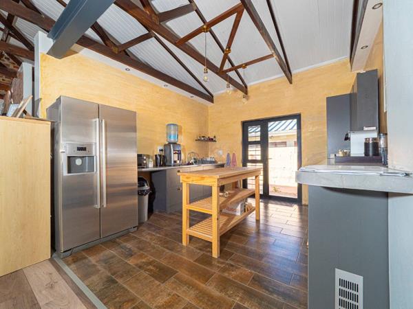 Main house is open plan with seamless flow. The kitchen has everything you need and space for a double door fridge,beautiful storm grey cabinets with plumbing for one appliance.