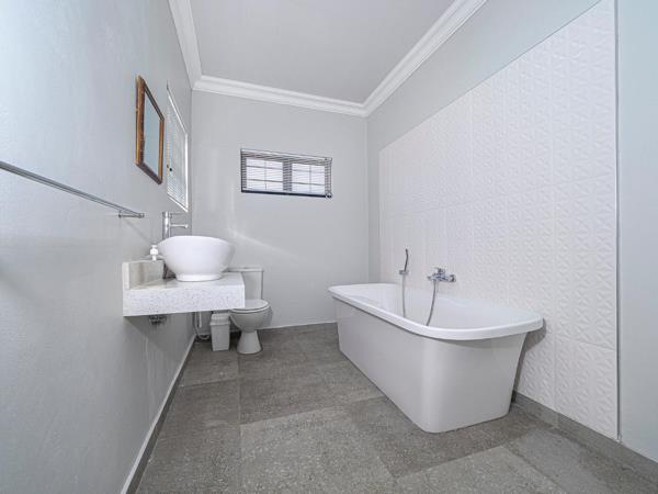 The separate cottage has 2 Bedrooms kitchen,bathroom and a porch. Porcelain tiles throughout,air con and own geyser.