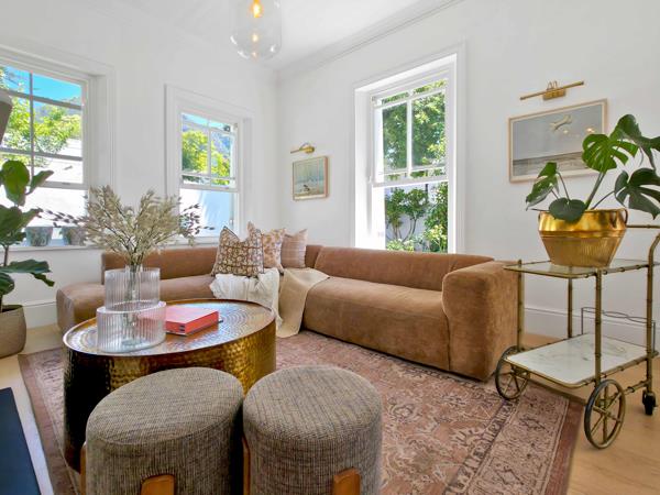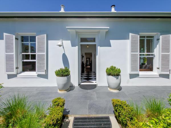 The private outdoor area is ideal for candlelit alfresco dinners on warm summer evenings or relaxed brunches beneath the wide awnings, overlooking a low-maintenance landscaped garden with stylish topiary balls and a striking splash pool designed by Tone Alexander.
