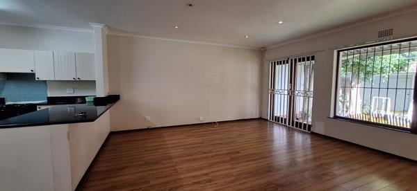 Warm laminated flooring throughout sunlit living spaces. An open-plan lounge flowing effortlessly to a landscaped front yard