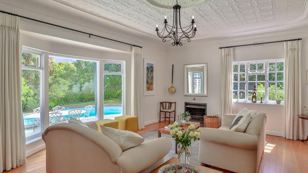 Set on a sought-after corner erf in Champagne Pinelands, this elegant home combines timeless charm with modern comfort. Surrounded by a beautifully landscaped garden, complete with a sparkling pool and multiple entertainment areas, it offers the perfect balance of style, warmth, and practicality.