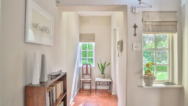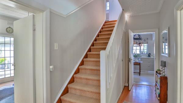 Step inside to a tiled entrance hall leading to a spacious study with a custom-built-in unit and access to a private patio. The lounge features a classic fireplace, large bay window, and stunning pressed ceilings, creating a cozy yet sophisticated atmosphere. The open-plan kitchen is the true heart of the home, boasting a farmhouse sink, free-standing gas oven, breakfast bar, and a large scullery/laundry area. A charming dining space with a built-in seated window and a generous entertainment area with a built-in braai and French doors to the garden make this an entertainers dream. Throughout, stylish screeded floors add a contemporary touch.