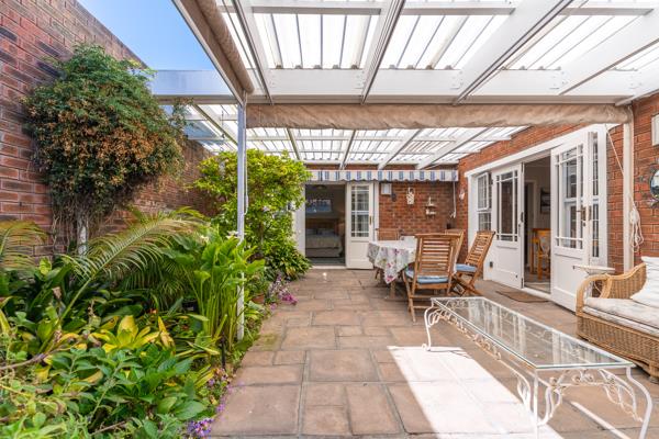 Accommodation includes three comfortable bedrooms with built-in cupboards, two neat bathrooms, and a guest cloakroom. The main bedroom opens to a private courtyard your own peaceful retreat.