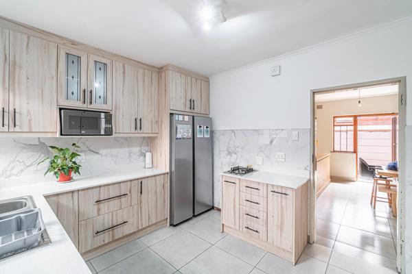 This well-appointed family home offers space, comfort, and all the extras for modern living. Fully tiled for easy maintenance, the home features 3 generously sized bedrooms, each with built-in cupboards, plus a versatile 4th bedroom that can be used as a study or sunroom.