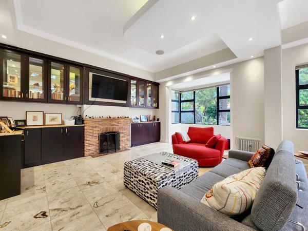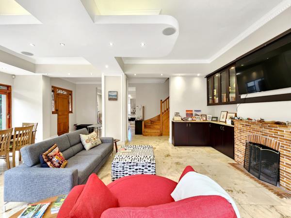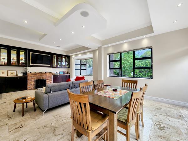 Unit B offers a delightful townhouse living experience that beautifully combines timeless features with contemporary updates. The home showcases lovely original wood finishes, pressed ceilings, and fireplaces, creating a warm and inviting atmosphere. The large living spaces are designed to comfortably host family and friends, with an entrance hall featuring original pressed ceilings that lead into an open-plan dining room and lounge. The lounge is accentuated by a built-in wall unit, fireplace, and large windows that allow an abundance of natural light to fill the room, enhancing its welcoming ambiance.