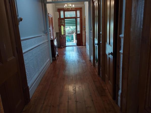 Framed by a magnificent old pin oak in the front garden, the home carries its preserved Victorian charm with grace. Inside, youll find high ceilings, thick walls, wooden floors, sash-style window frames, dado rails, fireplaces, and pressed-steel panels along the wide central passage. Its the type of authentic period detailing that simply cant be recreated today. The layout allows for flexible living, offering up to 5 bedrooms and 4 bathrooms, depending on how you choose to configure the spaces. As it stands, the home is divided into:
