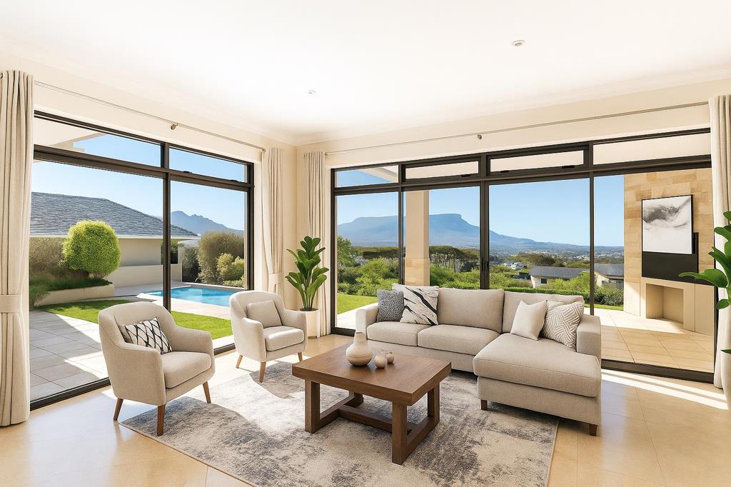 Perfectly positioned to capture the sweeping beauty of the Constantiaberg Valley, this four-bedroom family residence combines timeless elegance with generous proportions and exceptional flow. Designed for those who value both space and privacy, the home sits proudly on a 1 190sqm plot ideal for a family that loves to entertain and embrace an effortless indoor-outdoor lifestyle.