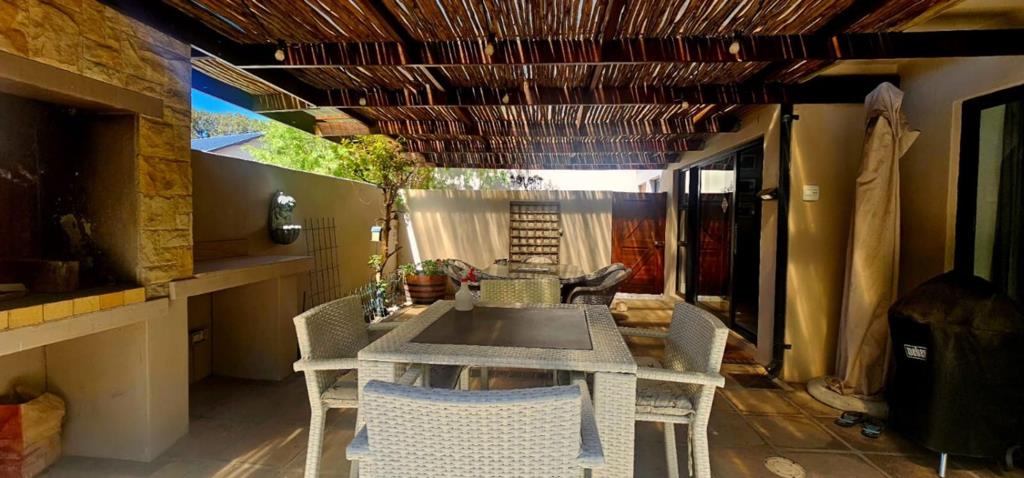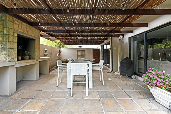 Featuring 3 spacious bedrooms, all en-suite, this home combines elegance with practicality. The open-plan kitchen and dining area flow seamlessly into a stunning entertainment space complete with a built-in braai, perfect for hosting family and friends.