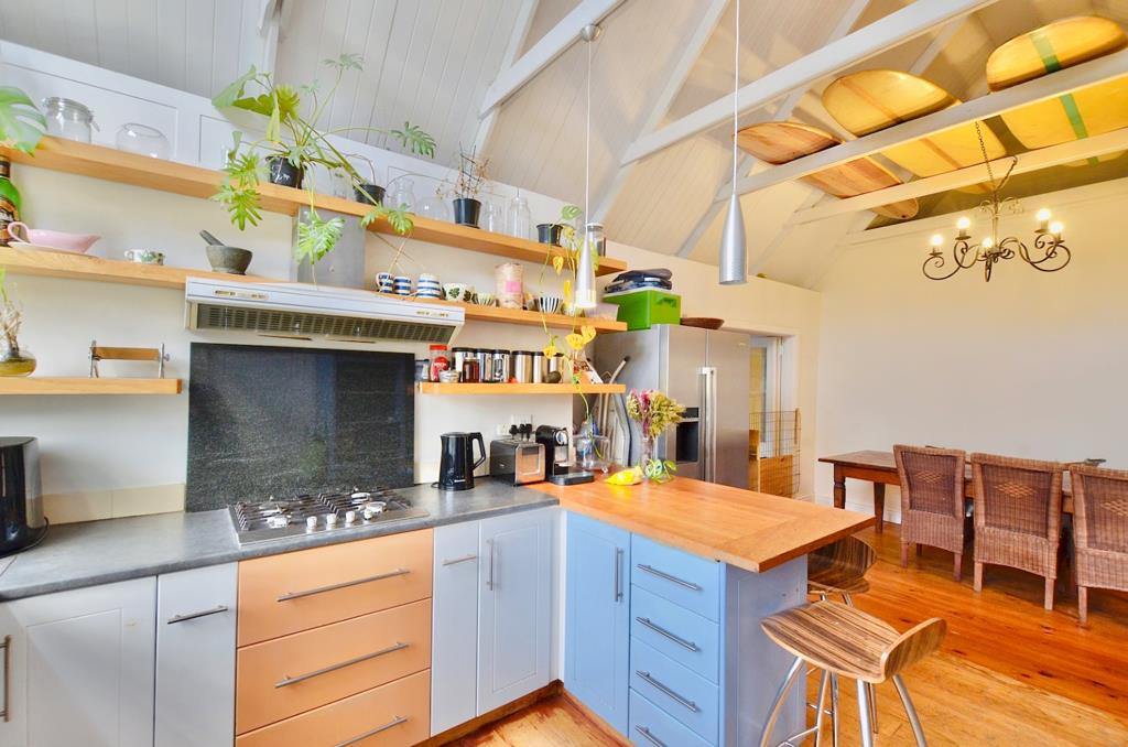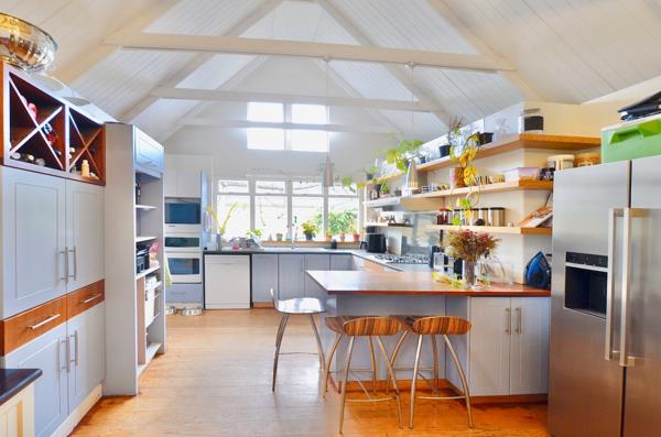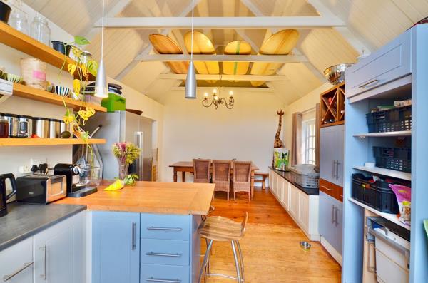 The main house offers a welcoming layout with an open-plan kitchen and dining area, leading through French doors to the lounge and TV room with a real wood-burning fireplace. While the home would benefit from some modern updates, its solid bones and charming flow provide the ideal canvas for transformation. Outdoors, a large garden with swimming pool creates the perfect backdrop for entertaining or future extensions.