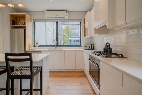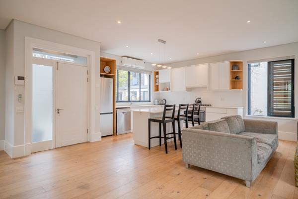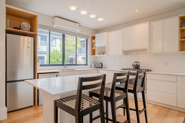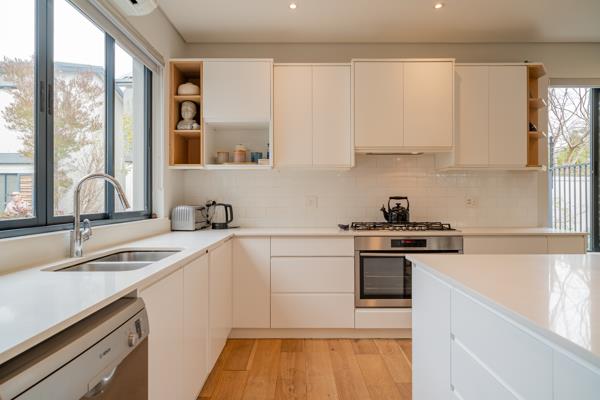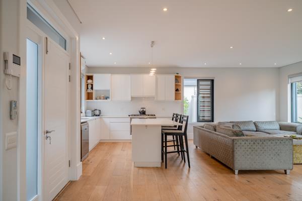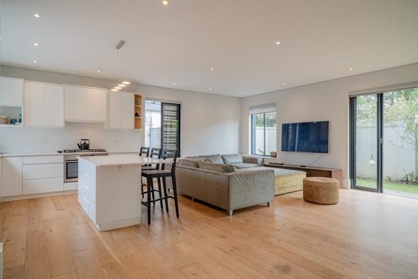 This home is one of just eight contemporary sectional-title residences, thoughtfully arranged around two sunny courtyards. Designed to maximise both space and privacy, the interiors offer an effortless flow for entertaining from the generous living area and open-plan kitchen with its large central island, through to the veranda and small private garden.