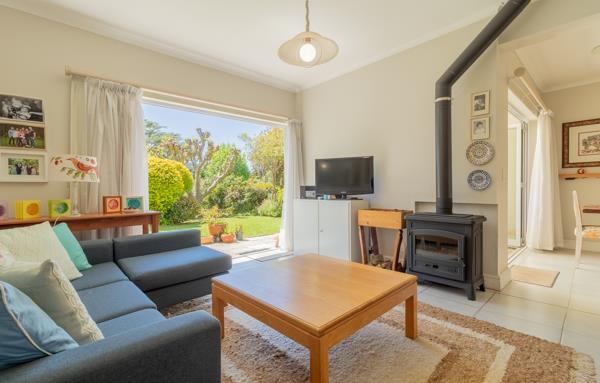 Practical features such as insulated exterior walls, a large closed-combustion fireplace, extra storage space, a leased solar system, and a rainwater tank enhance both comfort and efficiency.