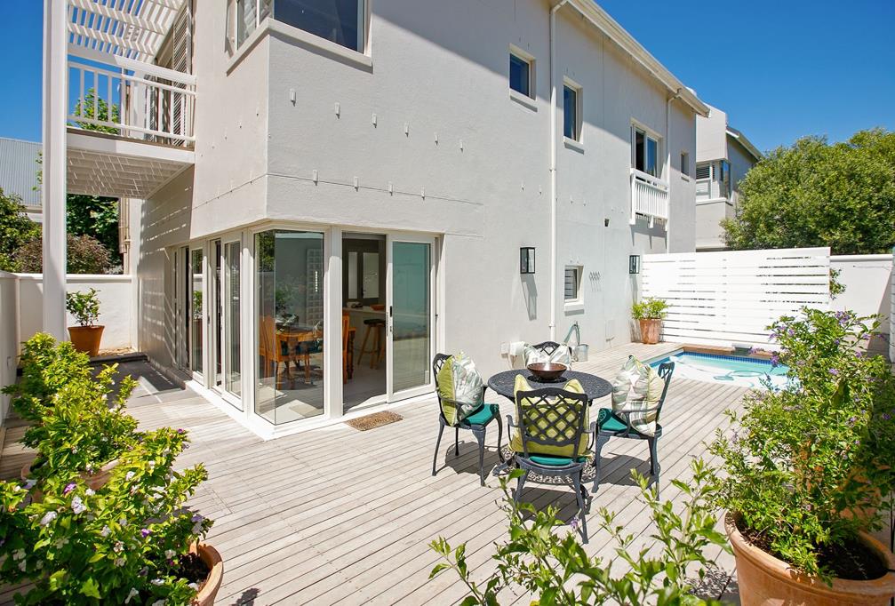 This beautifully designed residence presents the perfect opportunity for sophisticated living within a highly sought-after security estate in Tokai, adjacent to Steenberg Golf Estate. The property''s modern, multi-story exterior, characterised by clean lines and light-toned finishes, is complemented by attractive landscaping, creating an inviting kerb appeal.