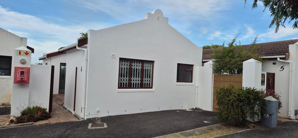 Discover this modern newly renovated 2-bedroom, 1-bathroom home within a secure complex in Frogmore Estate, Cape Town. The property presents a crisp white exterior with a distinctive gable-like facade, offering appealing kerb appeal on a well-maintained residential street and quiet cul-de-sac.
