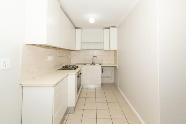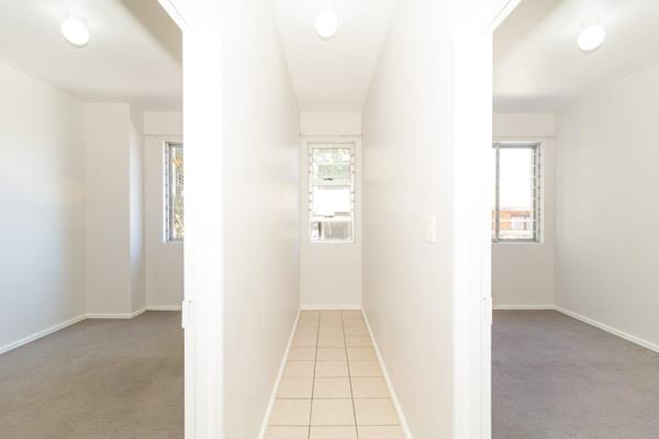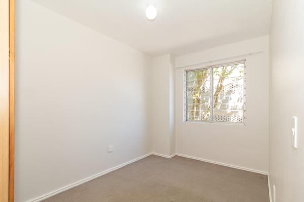 This neat and well kept apartment offers 2 spacious bedrooms with big windows and built-in cupboards, a bathroom with a basin, toilet and a shower over the bath and an open-plan living room and kitchen. The kitchen features Caesarstone countertops, a gas hob, ample cupboard space and is plumbed for one appliance - a washing machine or a dishwasher.