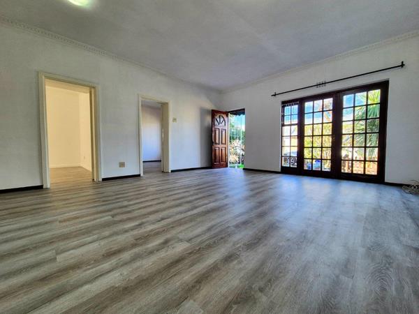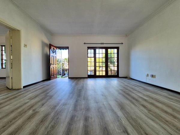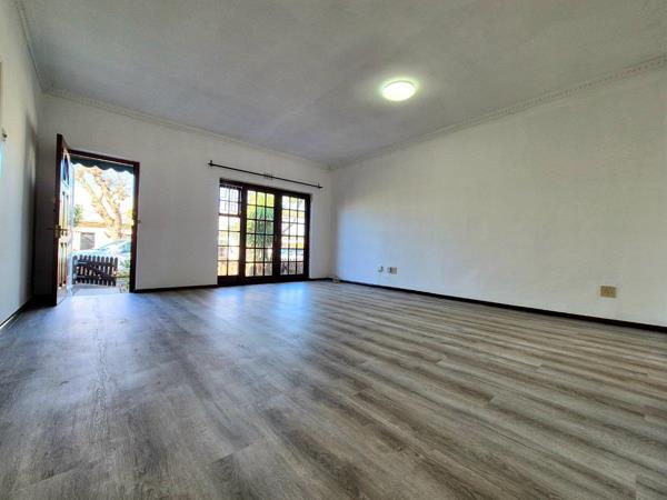 The home boasts new wooden-look laminated flooring throughout the lounge and dining room, complemented by beautiful cottage-pane French doors that open onto a quaint front garden, perfect for enjoying your morning coffee or relaxing in the sun.
