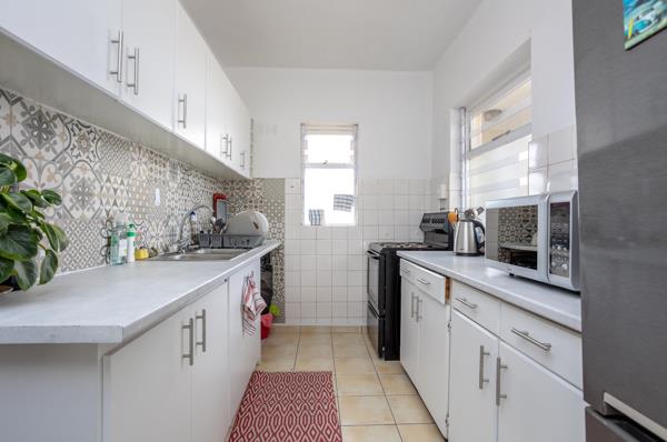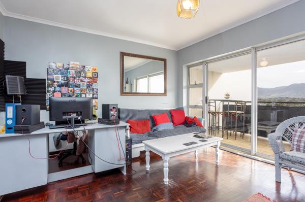 With sweeping mountain views over Upper Wynberg, this large two bedroom one & a half bathroom apartment offers a brilliant open-plan layout through the kitchen & lounge. With Plumbing for one appliance, double sink and ample cupboard space within the kitchen. A great space for a breakfast nook leading onto the lounge. Aluminium windows throughout each room, natural light beaming in from all sides & beautiful parquet floors. A great sized primary bedroom with incredible views & built in cupboards. The second bedroom ideal for guests or a study. A full family bathroom - bath, shower and basin - with a separate loo for multi-use convenience.