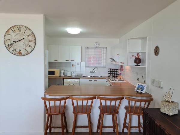 From the balcony of this neat apartment in Emerald Bay, the day begins with a ritual that never grows old. You open the doors in the lounge strolling through to the balcony and the scent of the ocean greets you before the sun does. A cup of coffee prepared in the well-appointed kitchen tastes different when the ocean is your front garden.