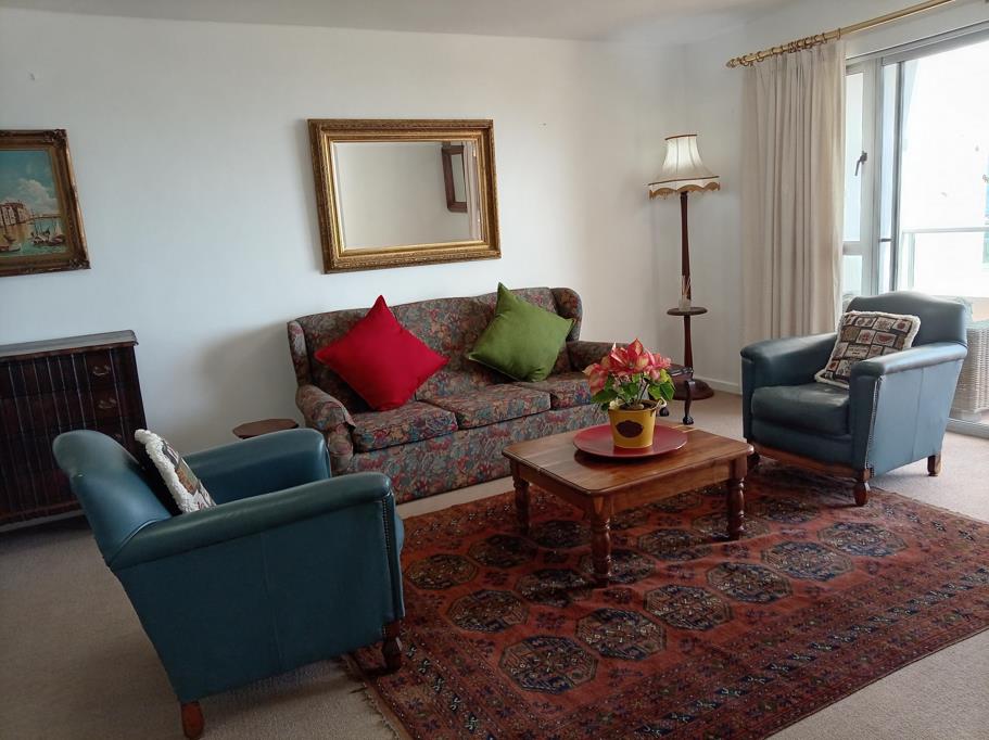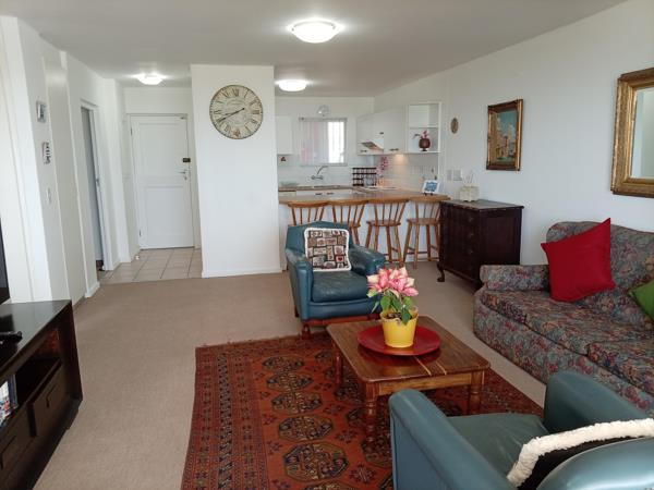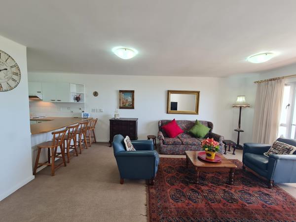 As the sun lowers over the Helderberg mountains, the sky over False Bay turns into a paintingfrom the apartments balcony, the view stretches uninterrupted, the ocean reflecting every colour.