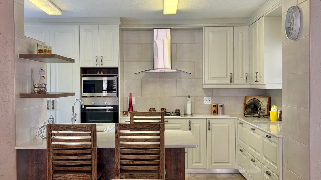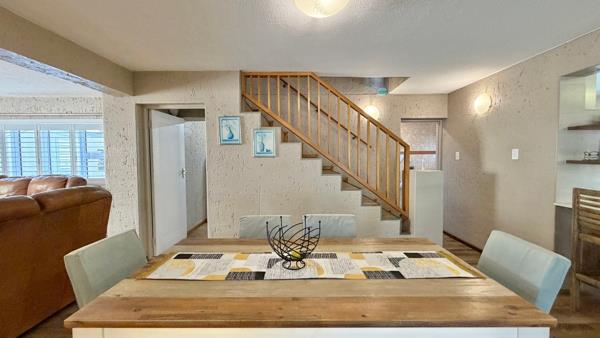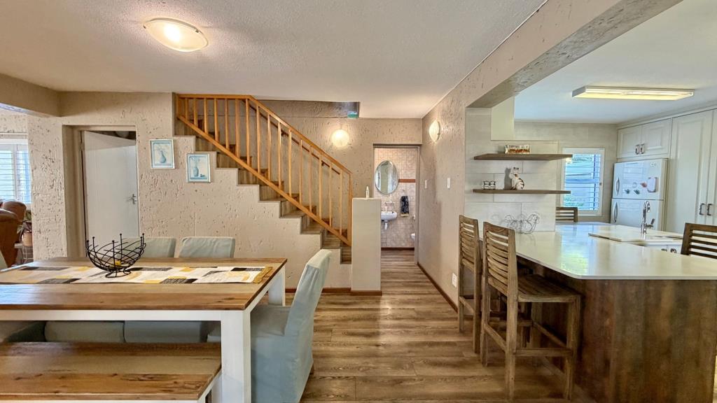 This exceptional home offers a truly move-in-ready experience, with no maintenance required. Situated within a well-established complex, the property provides excellent security and peace of mind. A spacious open-plan living area welcomes you in, complemented by a stunning, well-designed kitchen, perfect for those who dream of a stylish and functional culinary space. On the ground floor, youll find a comfortable bedroom with an en-suite bathroom, ideal for those who prefer to avoid stairs. There is also a study that can easily be converted into a braai room, along with direct access to a generous garage fitted with built-in cupboards. The garage includes the added convenience of a rear door, ideal for pulling through a small caravan or camping trailer.