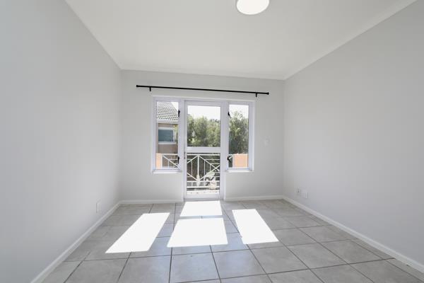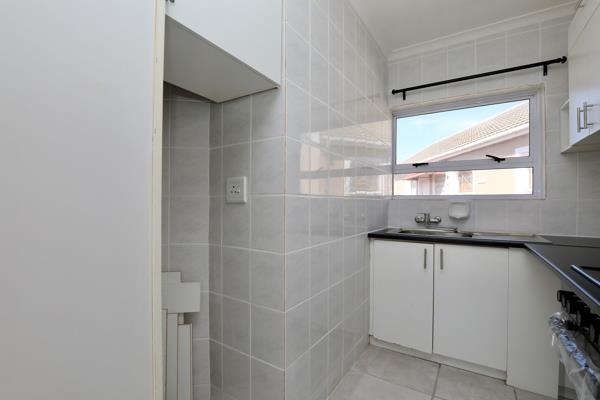 This well-maintained first -floor apartment is ideally located in a well-managed gated complex, with a communal garden, swimming pool and braai facilities