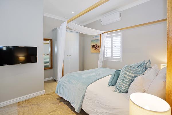Five guest en-suite bedrooms downstairs, fully equipped kitchen and 3 en-suite bedrooms upstairs (owners/mangers living area) with a full kitchen, 2 braai areas, double garage and a large entertaining area, extending to 992 m2. Beautifully landscaped garden, outdoor cabana and pool lounging area, partial Table Mountain views from upstairs. The guesthouse is located in a quiet safe street only 400m to the famous Bloubergstrand kite beach.