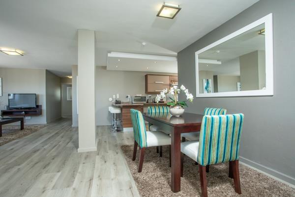 Aquarius Luxury Suites is ideally situated within walking distance of the pristine white sandy beaches of Bloubergstrand. Explore a vibrant community filled with restaurants, shops, and a variety of exciting activities. Residents can also take advantage of nearby amenities, including a swimming pool, gym, spas, School, 24-hour Security, Braai facilities, Squash court, Laundry room.