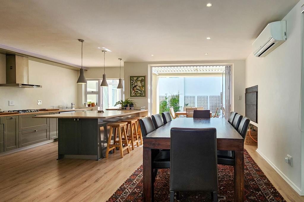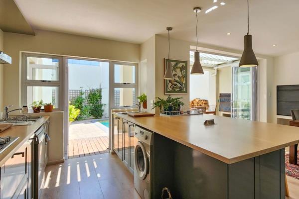 The heart of the home is its open-plan living and dining space, complete with a cozy indoor fireplace - perfect for those cooler evenings. Stackable doors frame breathtaking views of Table Mountain, effortlessly blending indoor and outdoor living.