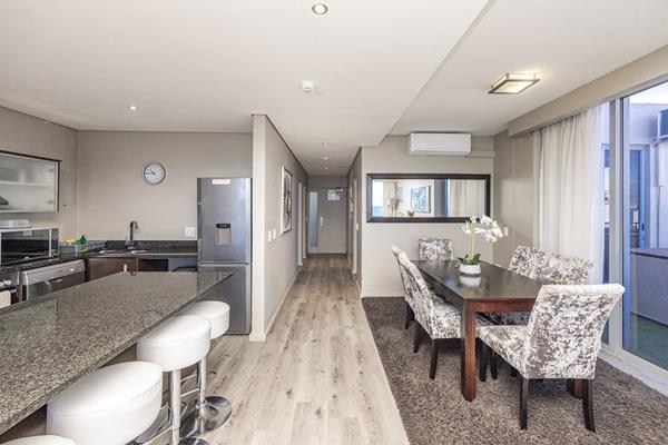 This stunning 145m2 apartment offers 2 bedrooms, 2 bathrooms, and a spacious balcony with breathtaking views of Table Mountain and the ocean.