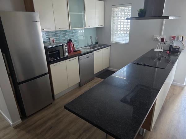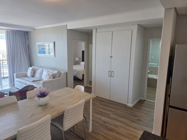 The lounge and dining rooms have sliding doors and the main bedroom has a patio door opening onto a wind protected balcony. Enjoy the fresh ocean air, the spectacular views and picture perfect sunsets whilst enjoying a gas braai and a glass of wine.