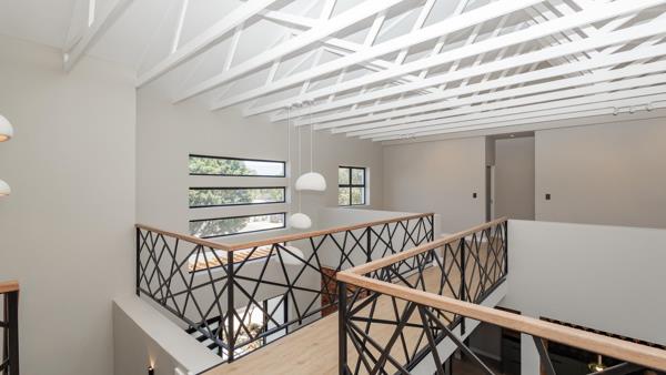 Subtle lighting illuminates the stairwell to upstairs landing with state of the art balustrade under double volume ceiling with exposed beams - 3 en-suite bedrooms all with b.i.c.s., main with walk-in dressing room, full bathroom with double vanities, heated towel rail - upmarket sanitary ware throughout - pause areas which can be used as pyjama lounges, reading corners, study areas with pendant lighting and partial mountain views. The 4th bedroom downstairs with full bathroom is ideally positioned for use by guests with ease of access to open plan loungedining area adorned with feature walls, foldaway doors and sliders leading to established garden with twin water features, wendy house store, sparkling kidney shaped pool with deck surround and overlooked by waving Palms and tanning deck under pergola.
