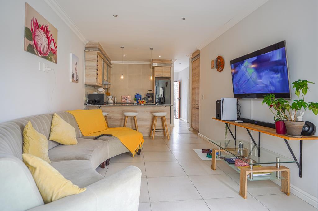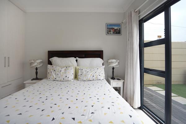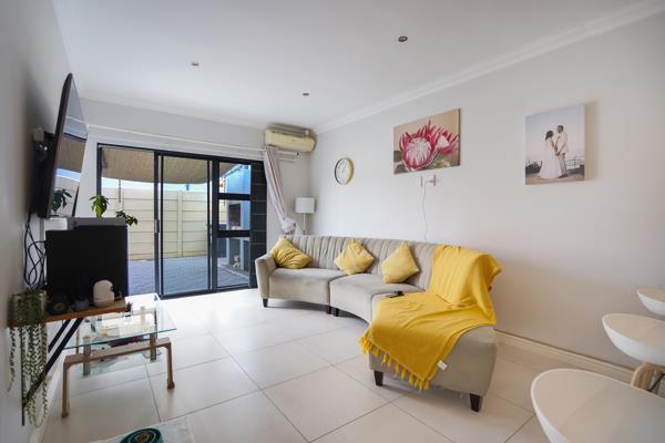 The main bedroom boasts an en-suite bathroom, while a second well-sized bedroom is serviced by a stylish second bathroom. Step outside to a private garden area, perfect for entertaining, complete with a built-in braaiideal for those summer evenings with family and friends.